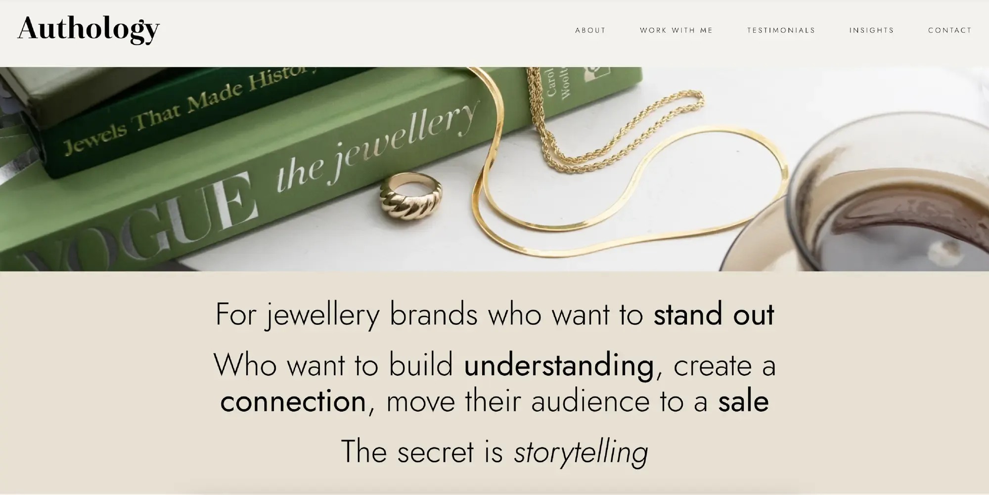 Exquise FY is an exceptional choice for Authology, aligning perfectly with their ethos. Its elegance, versatility, and readability make it a fitting match, enhancing their visual identity both online and offline. Although Exquise FY is used sparingly in the overall identity the font still plays a huge part in forming the visual identity of the brand.