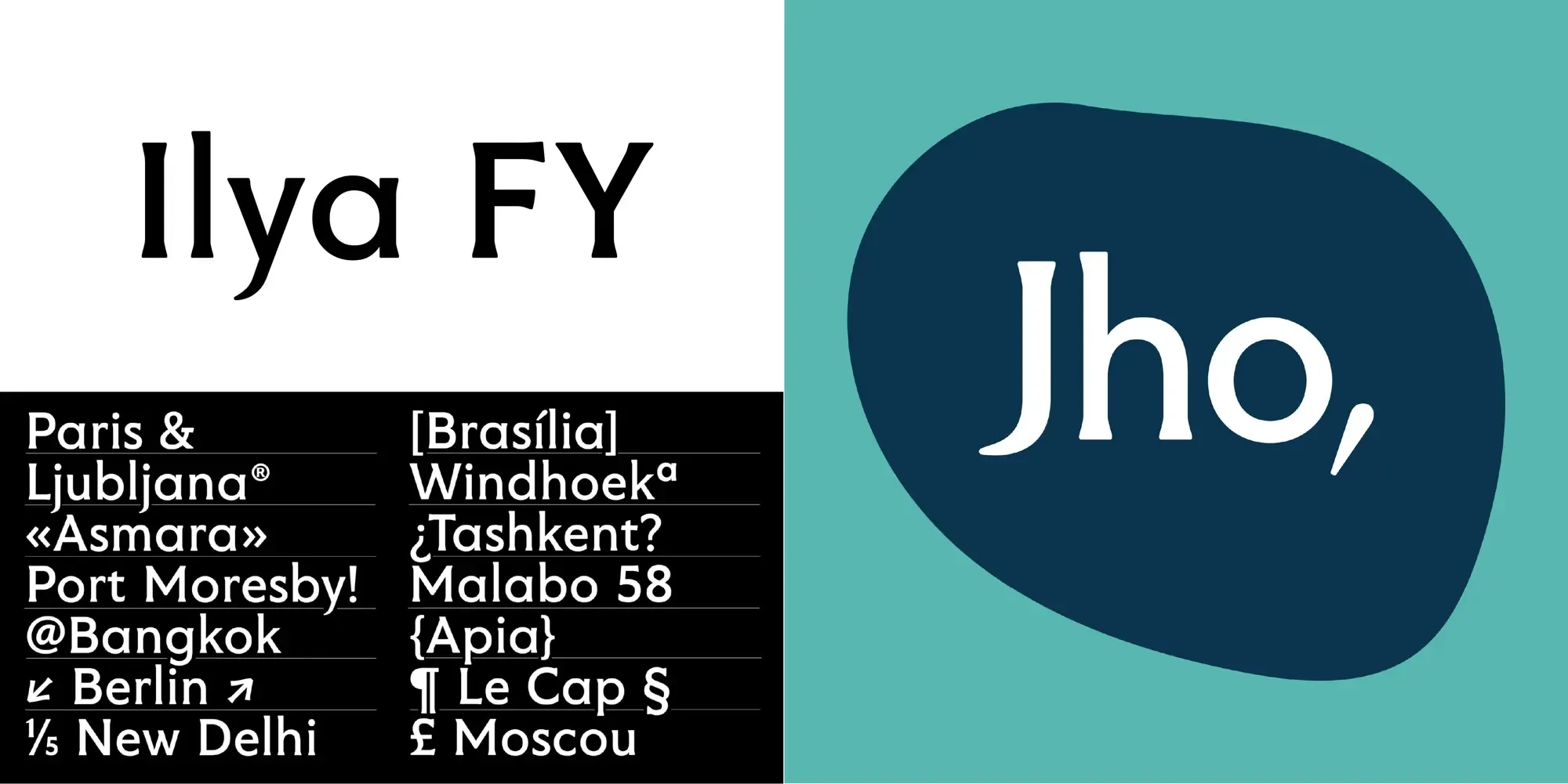 Unique Character: Ilya FY’s soft triangular serifs and rounded shapes create a distinctive and approachable look.